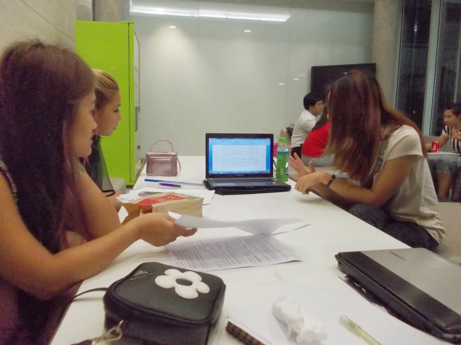 สวัสดีครับเพื่อนๆ วันนี้จะเป็นนัดแรกที่พวกเรารุ่น 1 ปริญญาโท สถาปัตย์ จะมารวมตัวกันเพื่อนำโครงร่างวิทยานิพนธ์ของตัวเองมาแบ่งปันกัน ช่วยกัน ดู เตือน ติ ว่ากันไป ครั้งนี้มากัน 5 คนครับ มีพลอย (หัวหน้ารุ่น) โบว์ เปิ้ล วุ้น และผม ส่วนห้องเต็มหมดครับ ครั้งหน้าคงต้องแก้ปัญหาเรื่องห้อง หากต้องมารวมตัวกันทุกวันพฤหัส ดังนั้นครั้งนี้พลอยจึงเสนอให้พวกเราไปรวมตัวกันที่อาคารแอดมิดชั่น ระหว่างพลอย โบว์ และผม นำเสนอให้ทุกคน เปิ้ลกับวุ้น จะคอย comment เรื่องรูปแบบที่ถูกต้องของ ม.กรุงเทพ